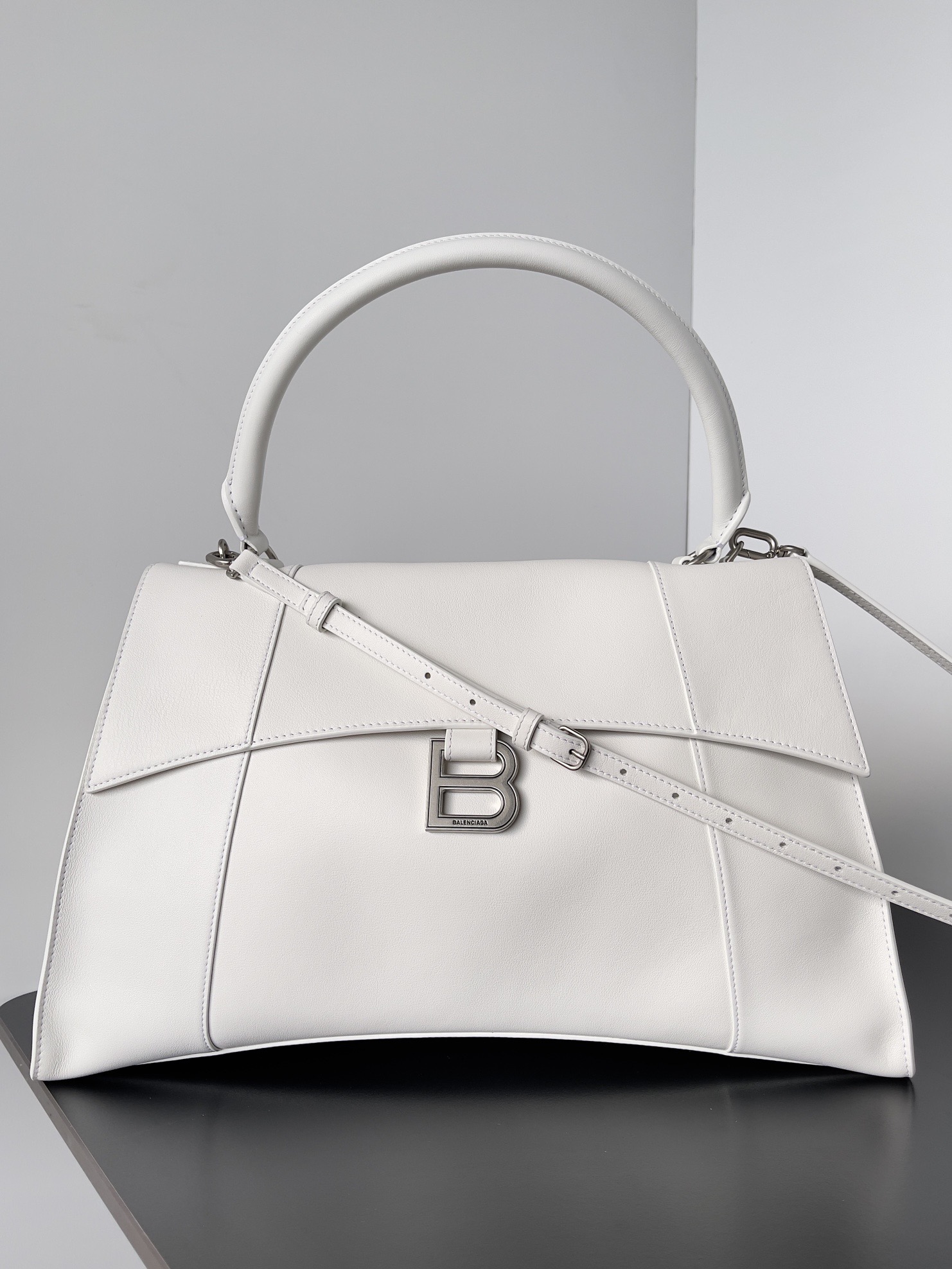 Откройте для себя Hourglass Soft от легендарного бренда Balenciaga! Эта сумка из мягкой кожи ягнёнка станет вашим незаменимым спутником благодаря элегантному дизайну и вместительности – идеально подходит как для повседневных дел, так и особых случаев. Комплект включает стильную коробку, пылезащитный чехол, фирменный пакет и документацию.