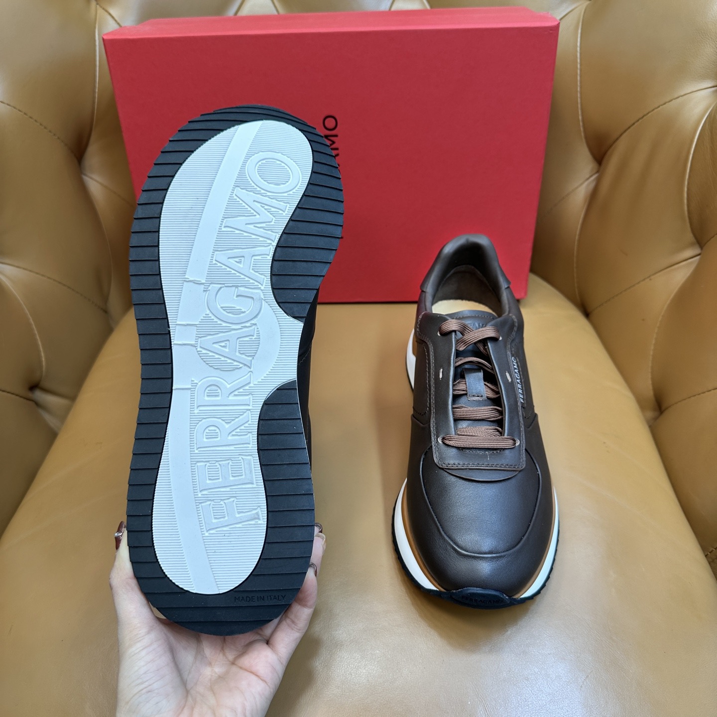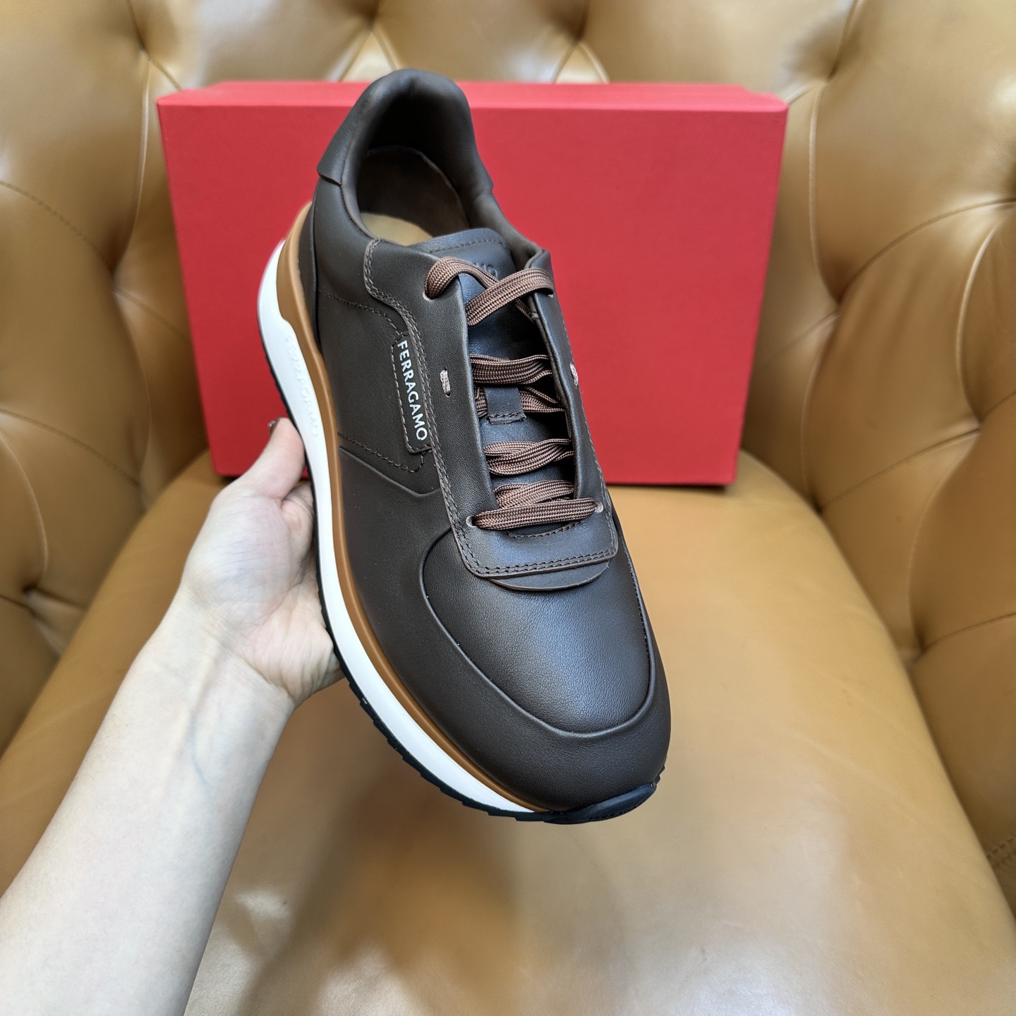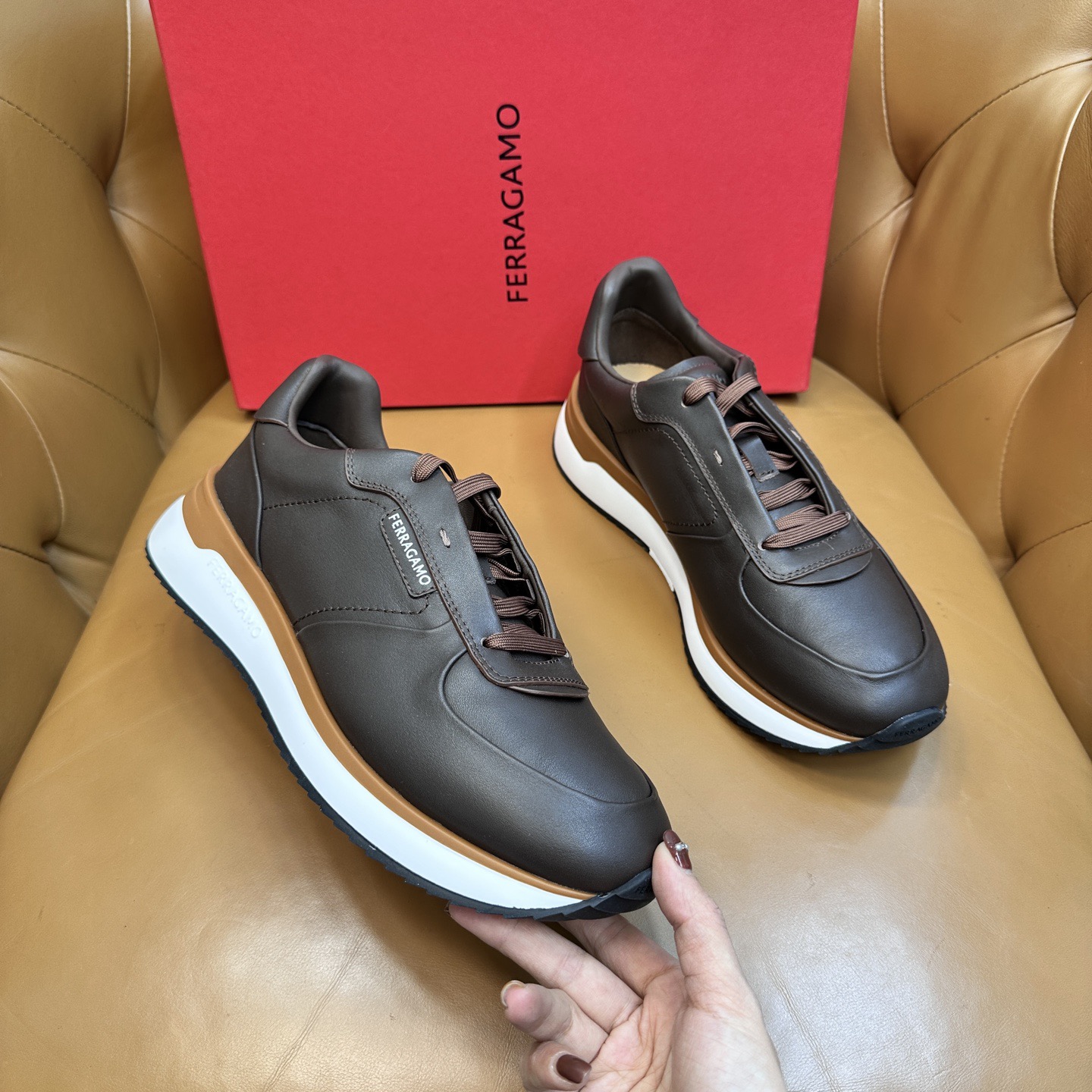 Представляем кроссовки бренда Ferragamo из телячьей кожи – элегантность и комфорт в одном изделии! Выбирая наши модели, вы получаете стильную обувь премиум-качества, идеально подходящую как для городских прогулок, так и для особых случаев. Изделия Ferragamo подчеркнут ваш статус и безупречный вкус.