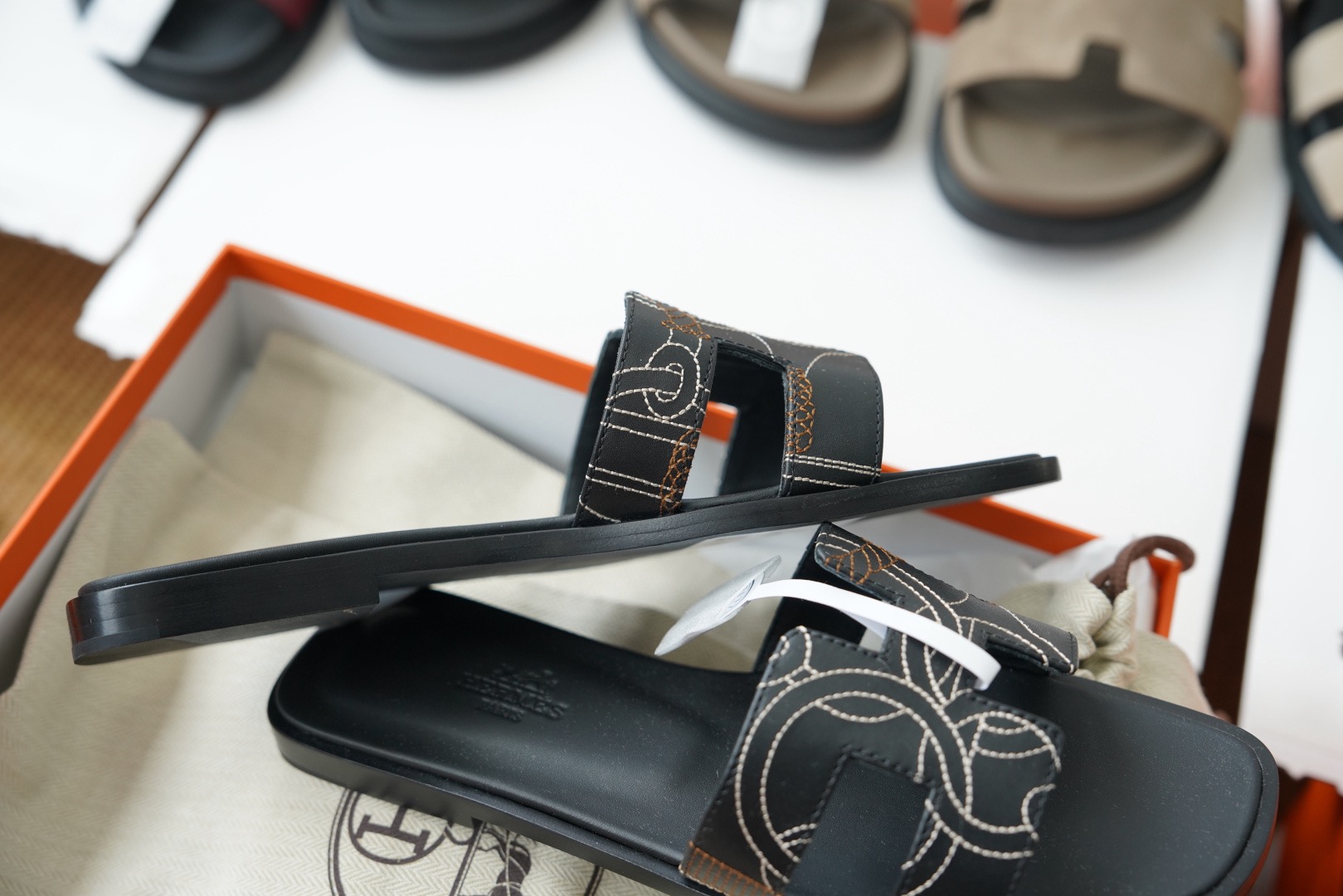 Представляем шлепанцы из натуральной кожи бренда Hermes – элегантность и комфорт в каждой детали! Превосходное качество материала обеспечивает долговечность и удобство при носке. Стильный черный цвет подходит к любому образу. Эти шлепанцы станут идеальным выбором для тех, кто ценит престижные вещи и предпочитает высокий уровень комфорта.