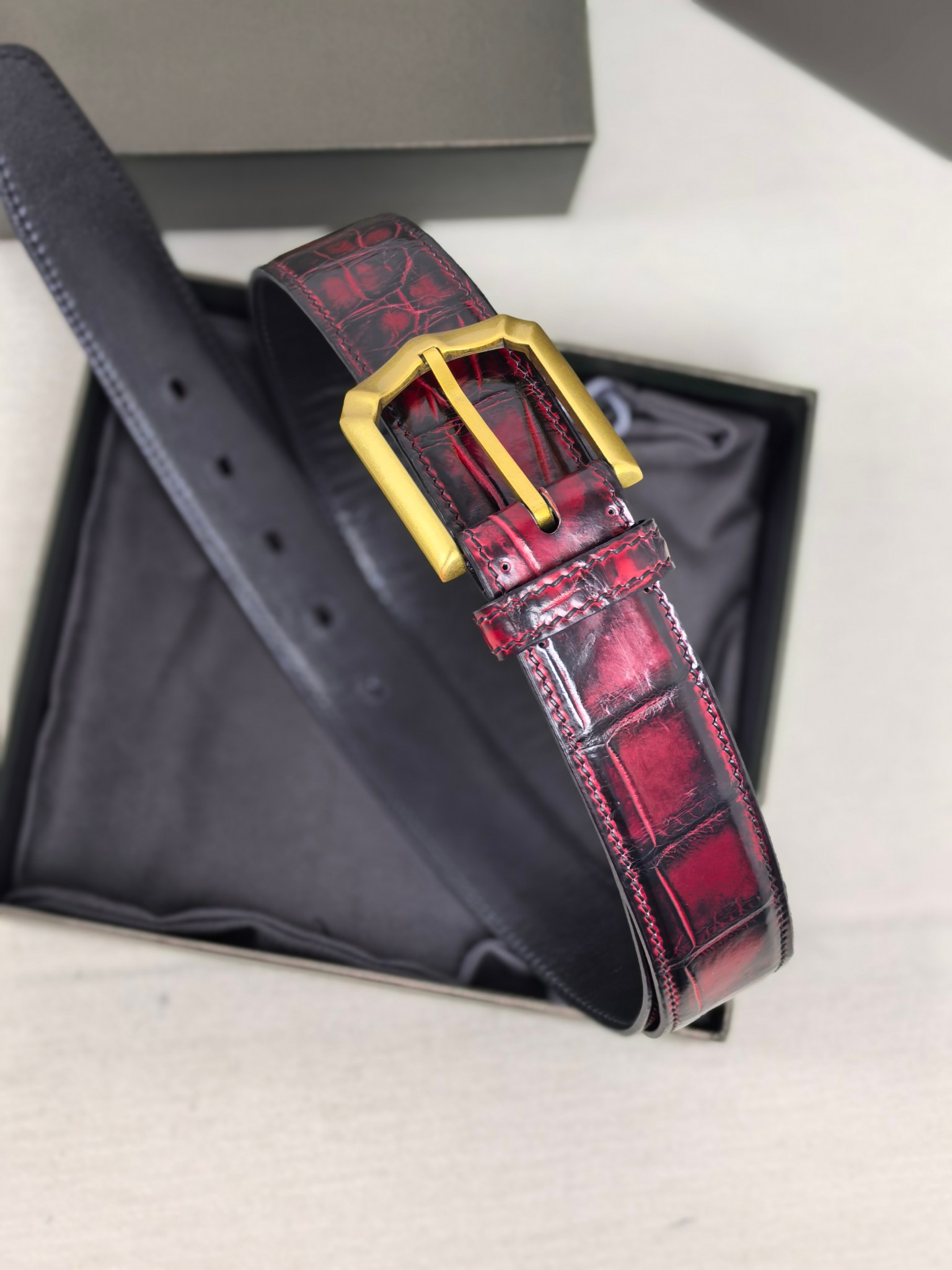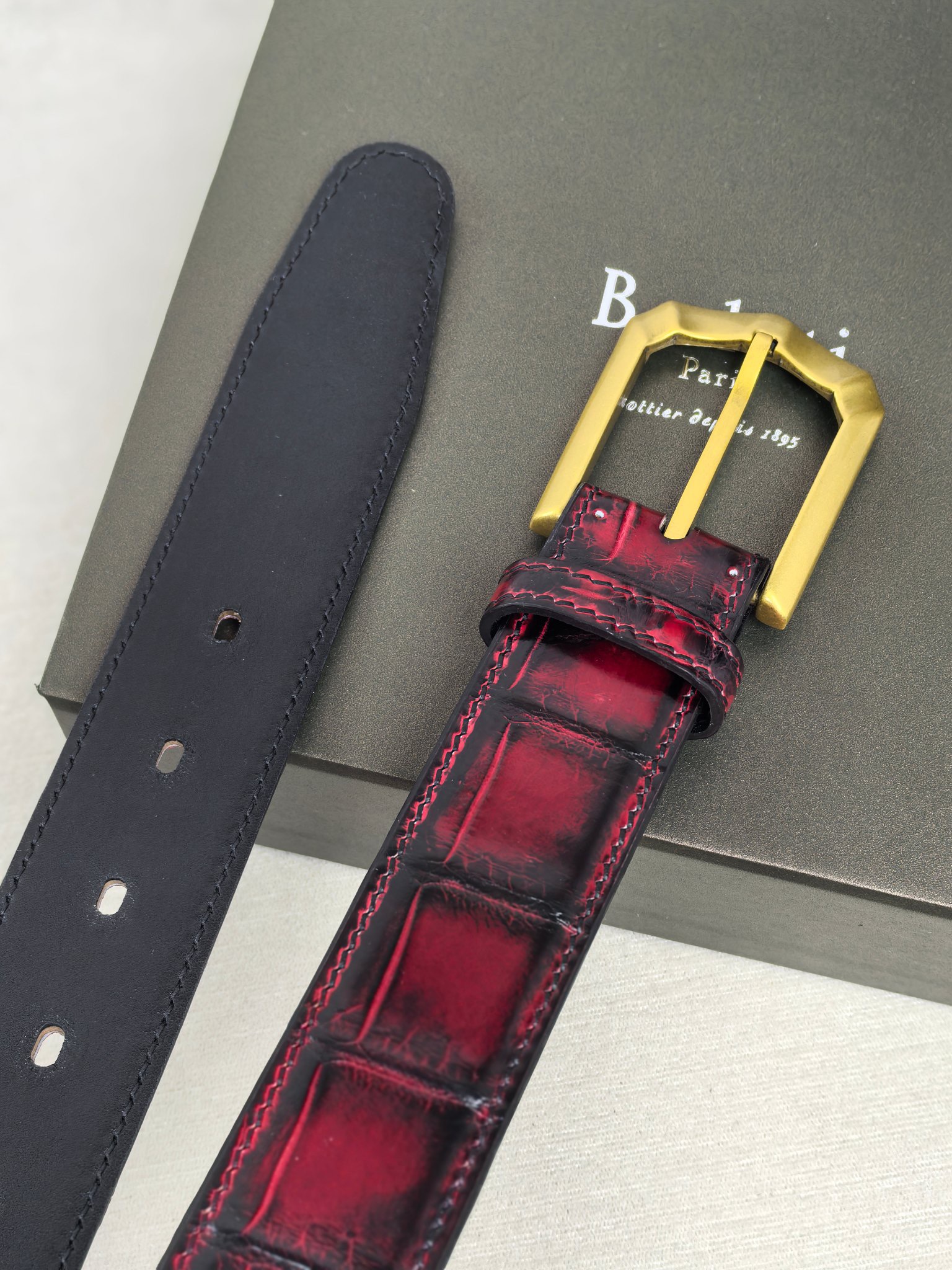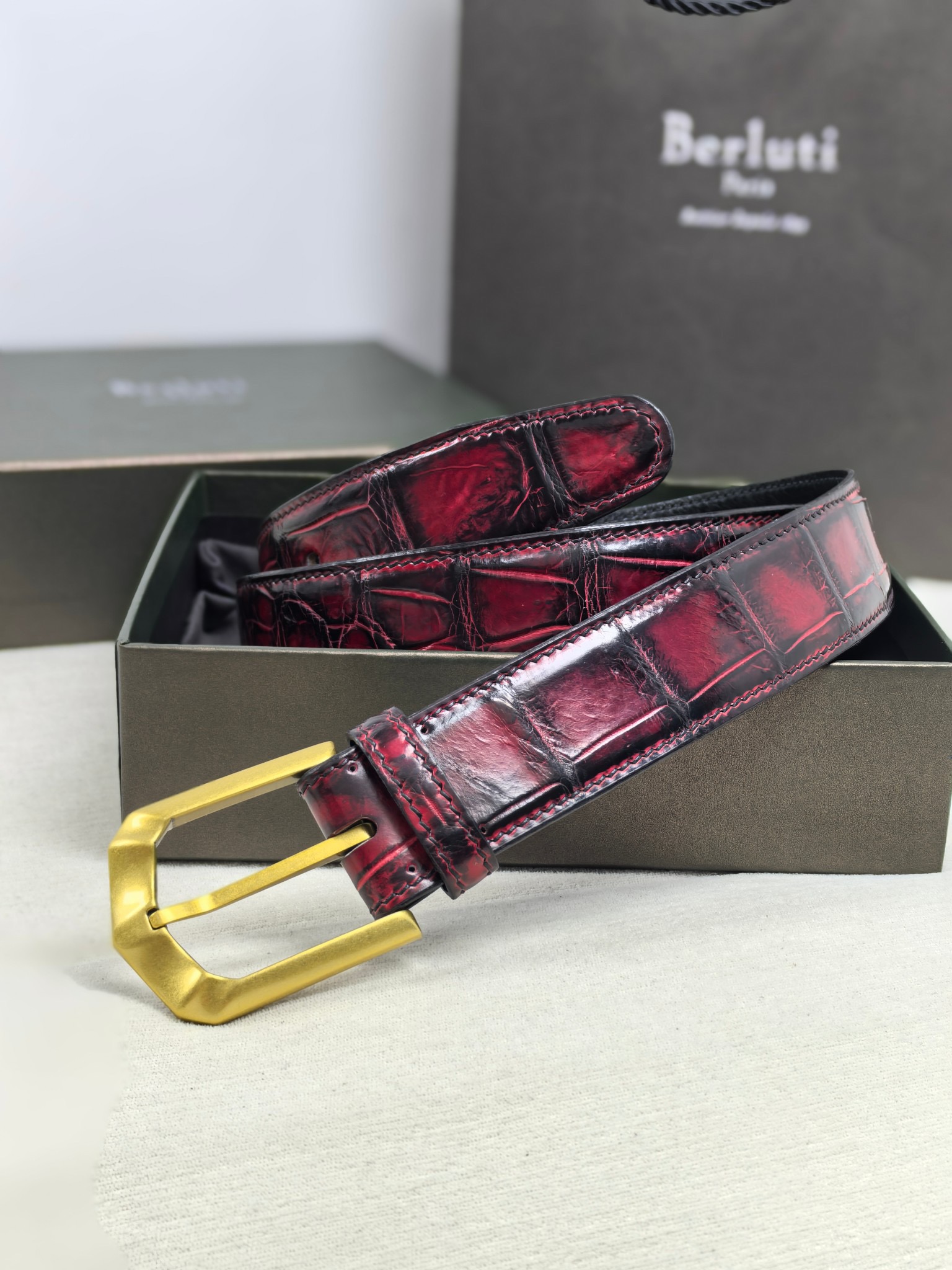 Ремень Berluti из натуральной коровьей кожи – символ элегантности и безупречного вкуса. Ручная окраска придает уникальность каждому изделию, подчеркивая ваш стиль и индивидуальность. Комплект включает коробку, пылезащитный чехол и документацию, обеспечивая комфортное хранение и транспортировку. Широкий ремень 3,5см идеально дополнит деловой костюм или повседневный образ.