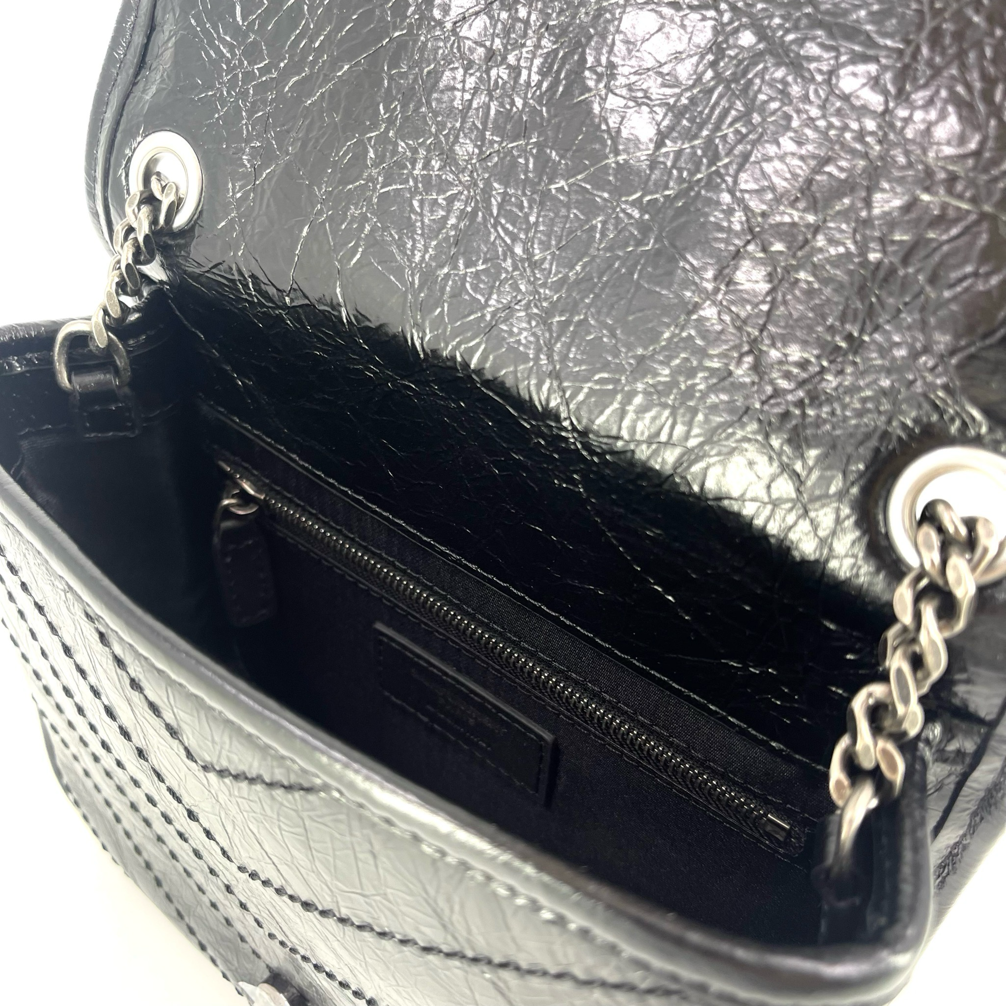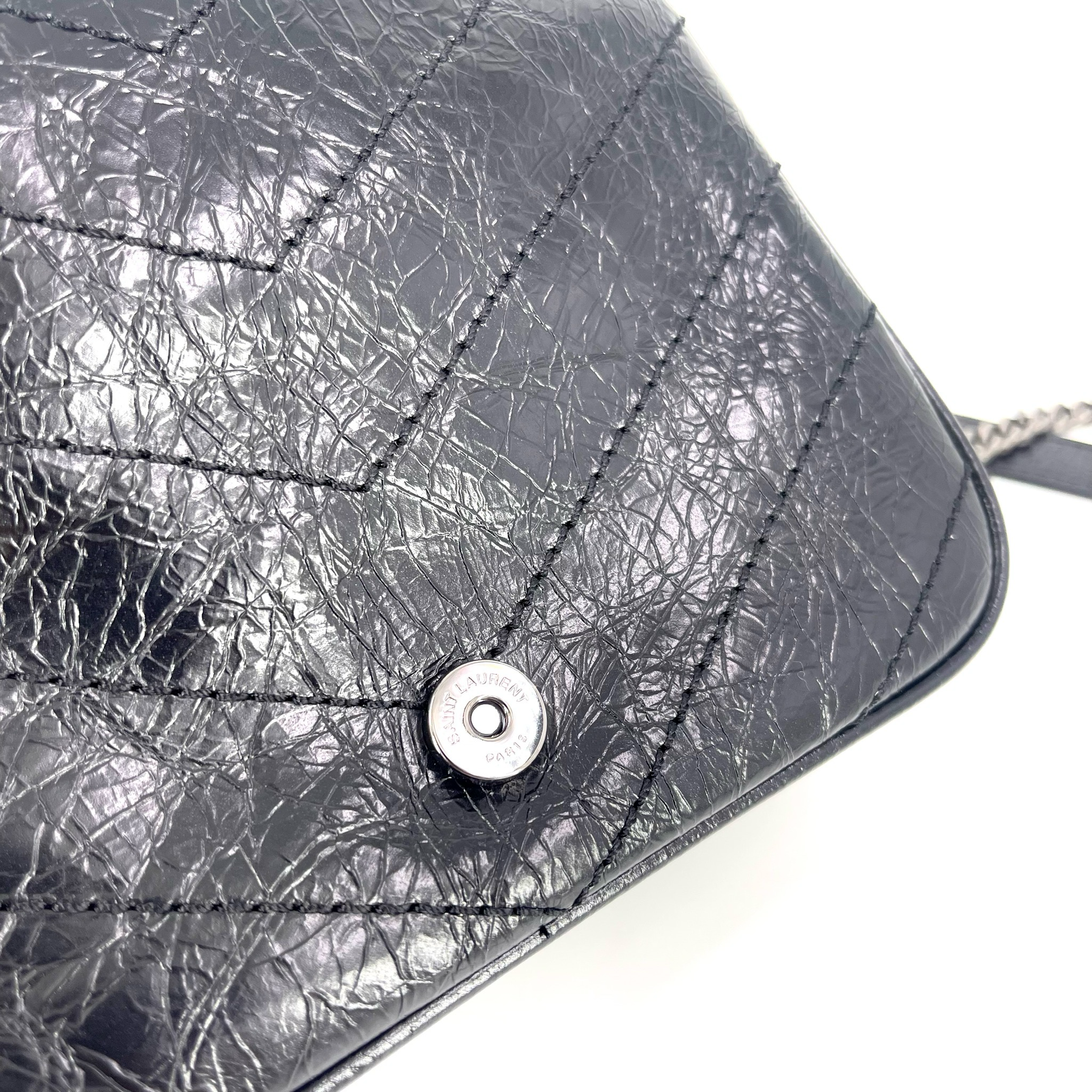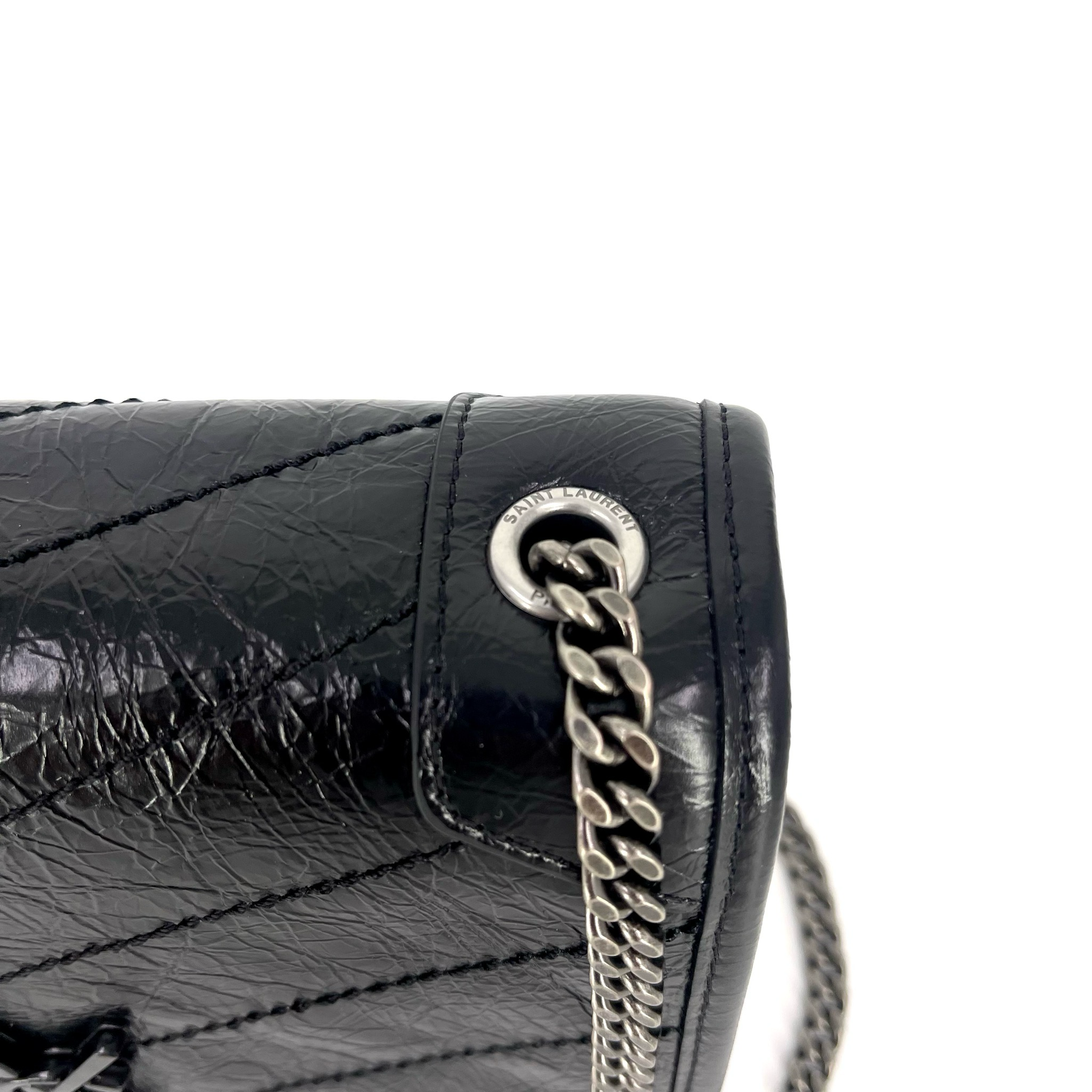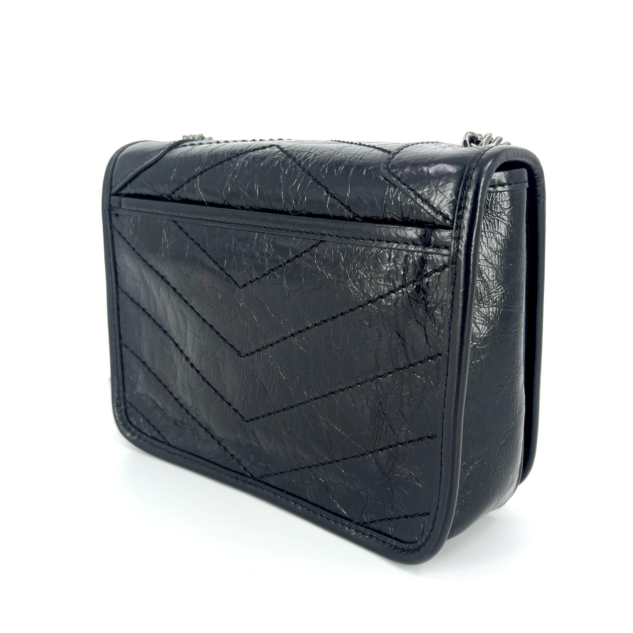 Saint Laurent Niki Chain Wallet Vintage стильная сумка от известного французского бренда, выполненная из высококачественной кожи черного цвета. Благодаря своим компактным размерам (18,5х14х6см) она легко поместится как в руке, так и через плечо. Фурнитура серебряного цвета добавляет элегантности этому изделию. Эта модель идеально подойдет тем, кто ценит качество, стиль и удобство.