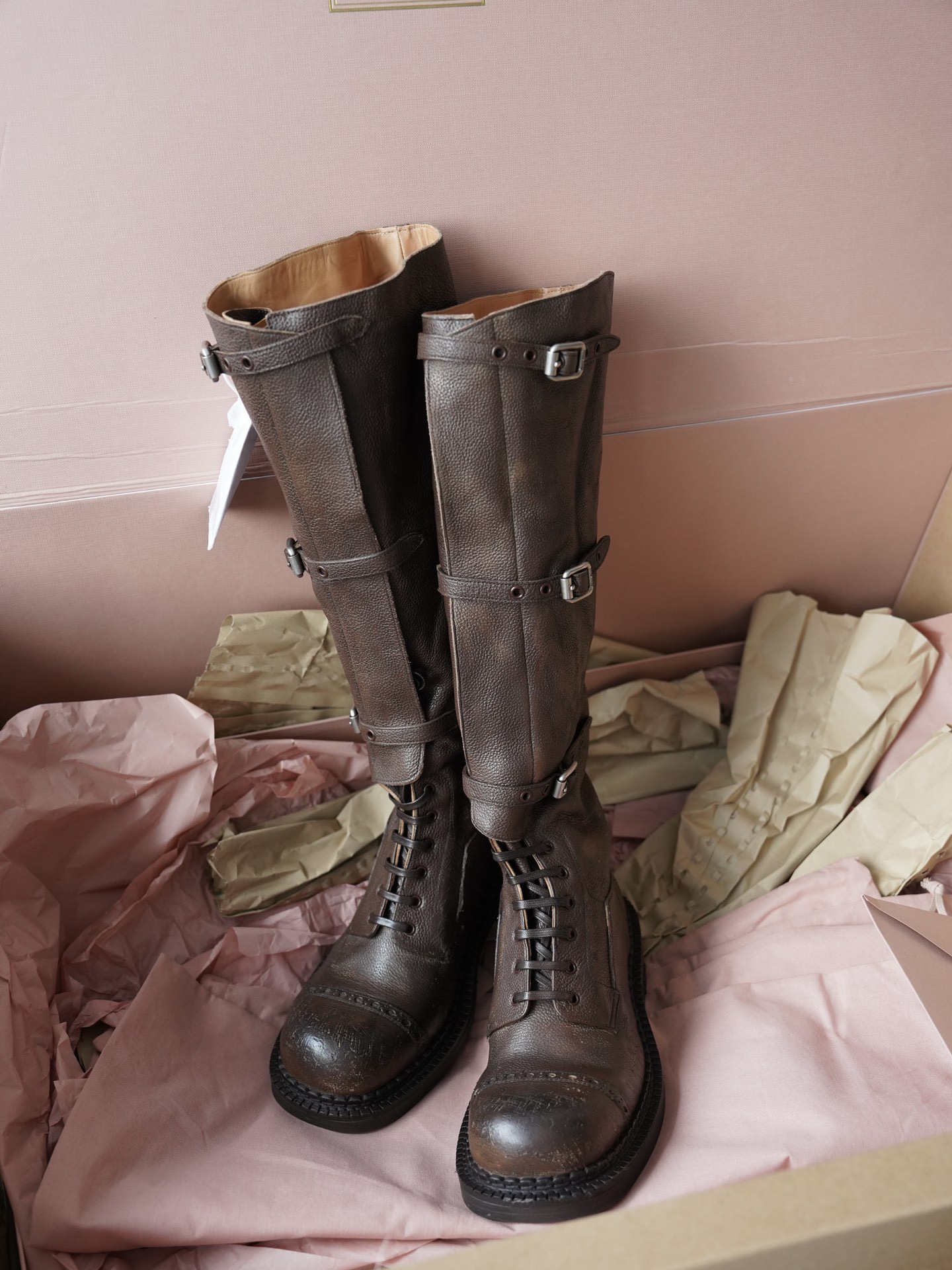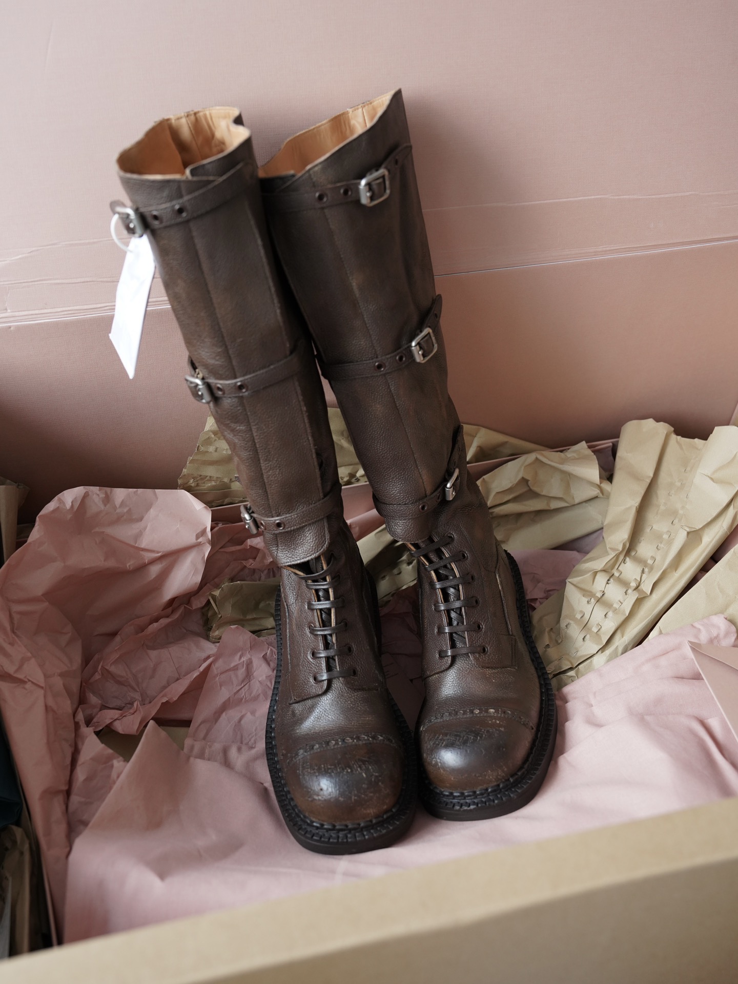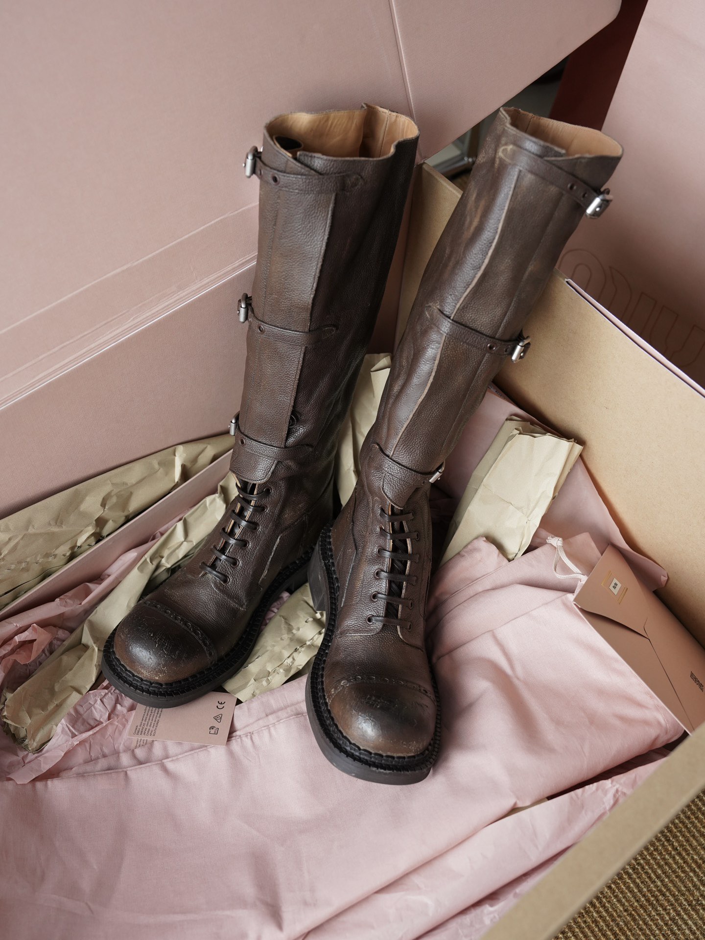 Представляем коричневые сапоги бренда Miu Miu, выполненные из качественной натуральной кожи. Невысокий каблук (3,5 см) придает уверенности шагу, а длина изделия (40 см) подчеркивает стильность образа. Купить данную модель можно исключительно онлайн, доставка займет от 15 дней – идеальный выбор для тех, кто ценит свое время и комфорт!