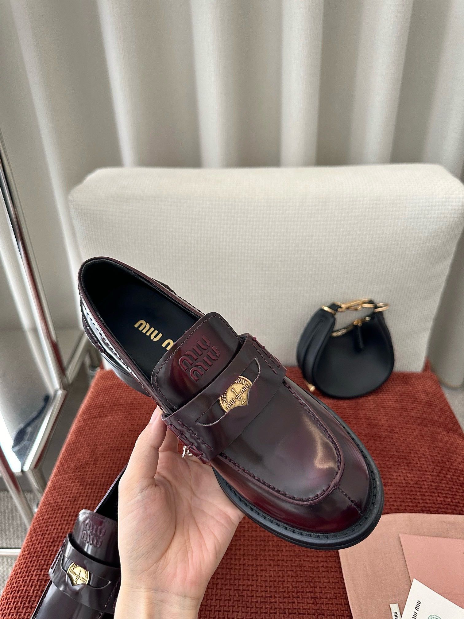 Откройте для себя элегантные лоферы Miu Miu с высотой каблука 5 см, выполненные из благородной бордовой кожи премиум-качества. Это идеальное сочетание стиля и комфорта – подчеркните свою индивидуальность и безупречный вкус. Не упустите возможность стать обладательницей модного аксессуара известного итальянского бренда!