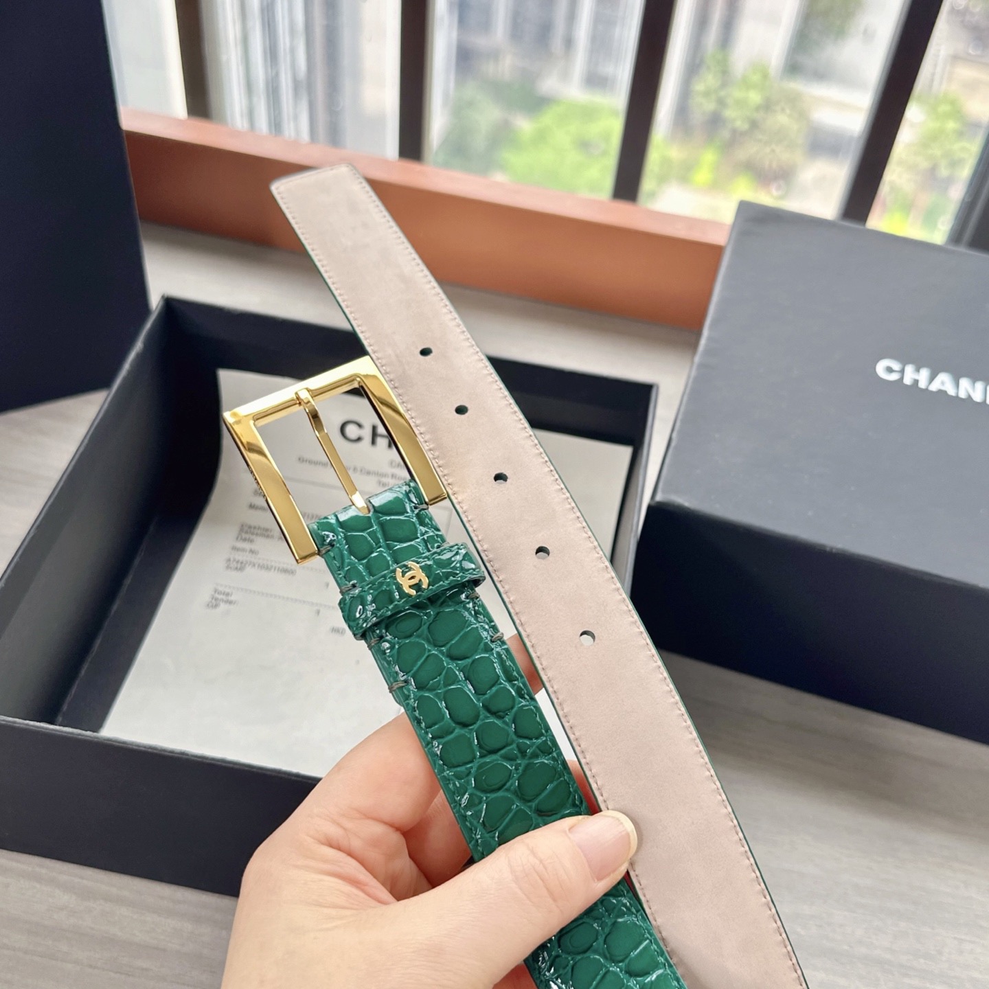 Эксклюзивный аксессуар от легендарного бренда Chanel — «Винтажный крокодиловый принт». Изящная телячья кожа подчеркивает безупречный стиль владельца. Широкий ремень шириной 3,0 см станет акцентным элементом вашего образа. Комплект включает коробку, пылезащитный чехол, сертификат и фирменную упаковку Chanel.