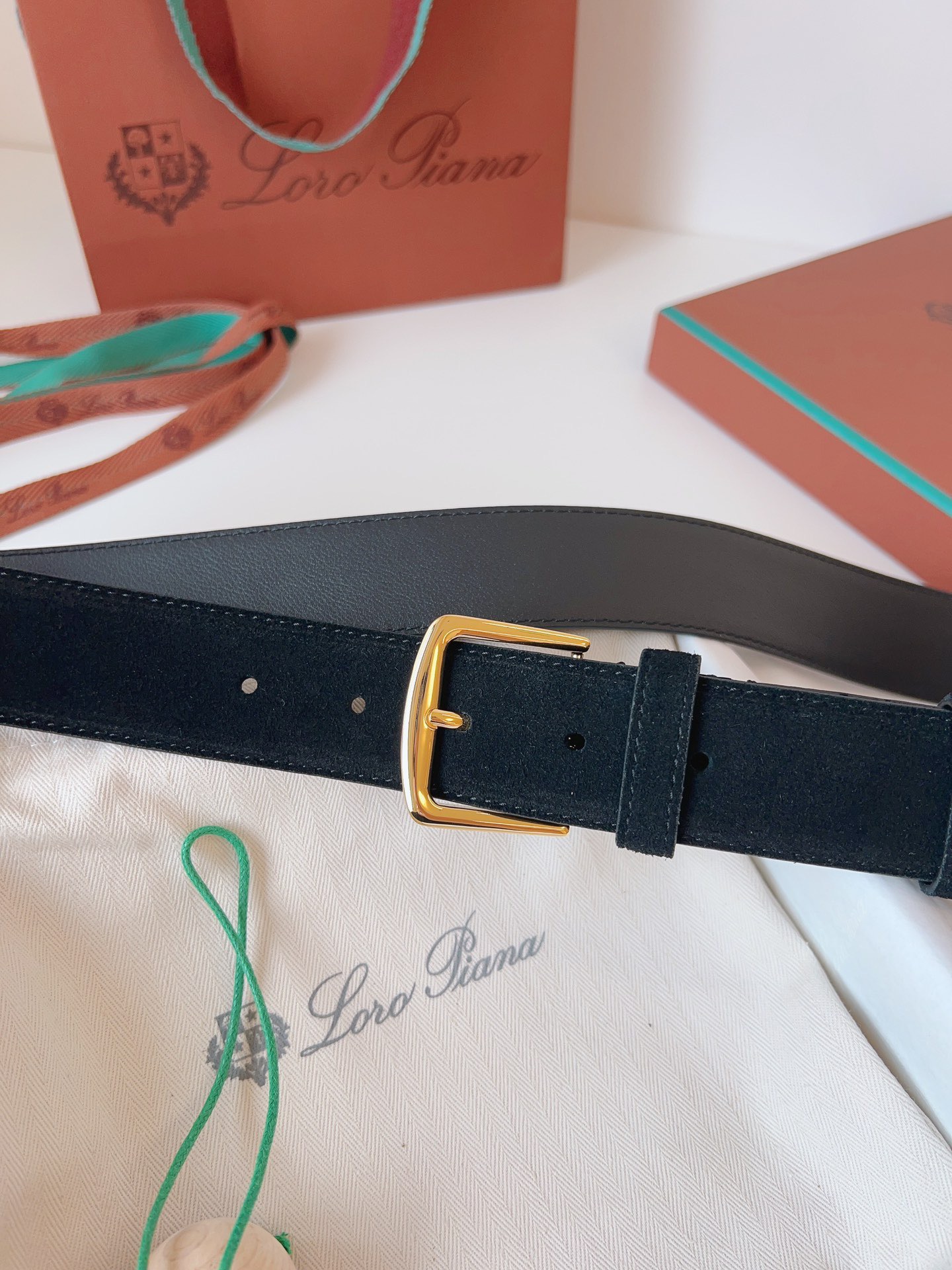 Ремень премиум-класса бренда Loro Piana выполнен из высококачественной замши с основой из натуральной кожи коров. Высокая прочность материалов обеспечивает долговечность изделия, сохраняя при этом элегантность внешнего вида. Металлическая пряжка с палладиевым покрытием подчёркивает статус владельца. Широкий ремень 3,5см универсален и идеально дополнит деловые костюмы или повседневные образы. Комфортная фиксация, стильное исполнение, оригинальная упаковка – ваш идеальный аксессуар уже ждёт вас!